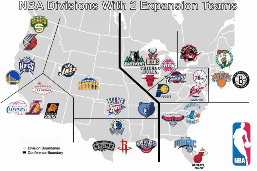 Si se fructifica una expansión a 32 equipos, el reparto de equipos sería de 16 equipos en cada conferencia y una reestructuración de las divisiones siendo 8 en total con 4 equipos en cada una de ellas. Pero como Las Vegas y Seattle se marcharían a la Conferencia Oeste, habría que mover a un equipo a la Conferencia Este. Y se rumorea bastante que está el dilema a resolver entre los Minnesota Timberwolves o los Memphis Grizzlies por razones meramente logísticas para ambos conjuntos.