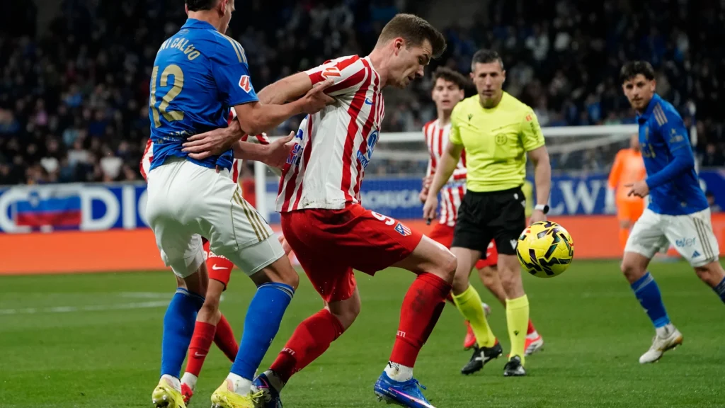 Estas variantes permitirían una nueva situación clara de gol propuesta por el Real Oviedo, tapada nuevamente por Jan Oblak y finalmente anulada por posición adelantada. Hasta aquí las atajadas del partido se contabilizaban en 0 para el local y 4 para el visitante.