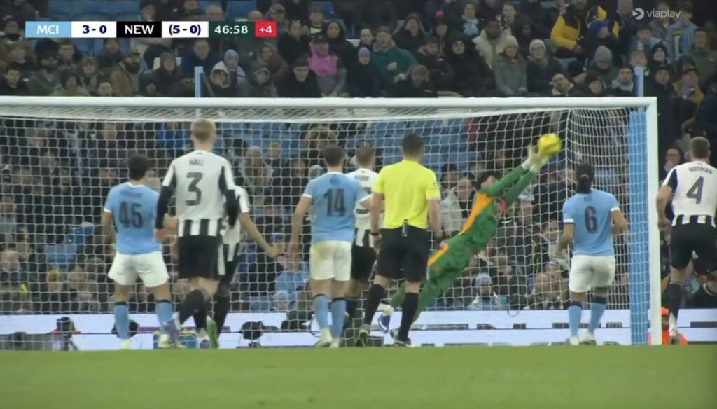 El City fue superior defensiva y ofensivamente, con una presión alta que dificultó cualquier intento de salida limpia del conjunto de Eddie Howe. Aun así, el Newcastle tuvo su primera gran ocasión en el minuto 21, cuando Anthony Gordon probó a Trafford, que respondió con una parada de mérito.