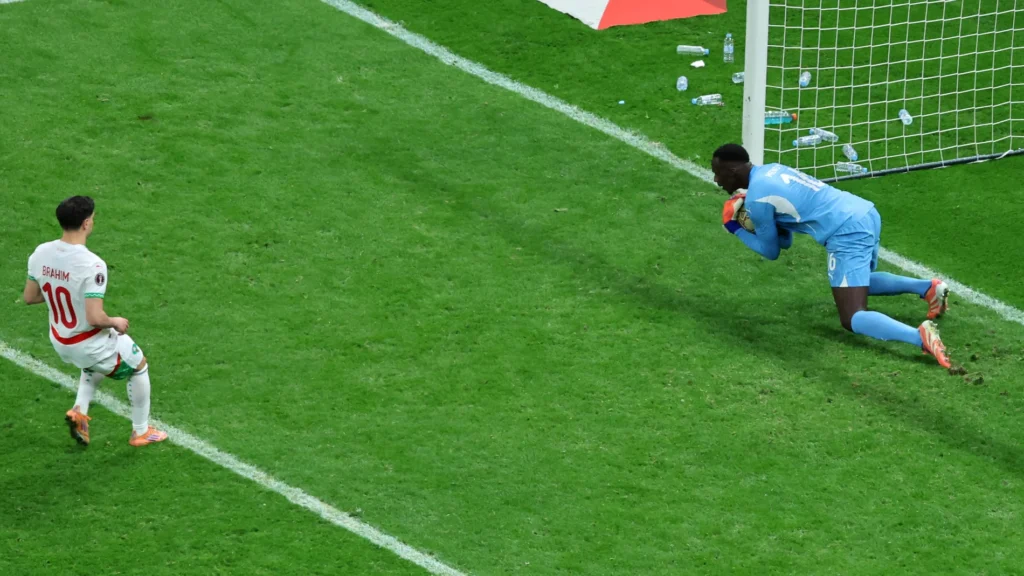 Inmediatamente después, Marruecos ve cómo se señala penalti a su favor por una discutible caída de Brahim dentro del área senegalesa. Esta sería la jugada que estaría el caos, y el origen de todo el conflicto que ha venido después.