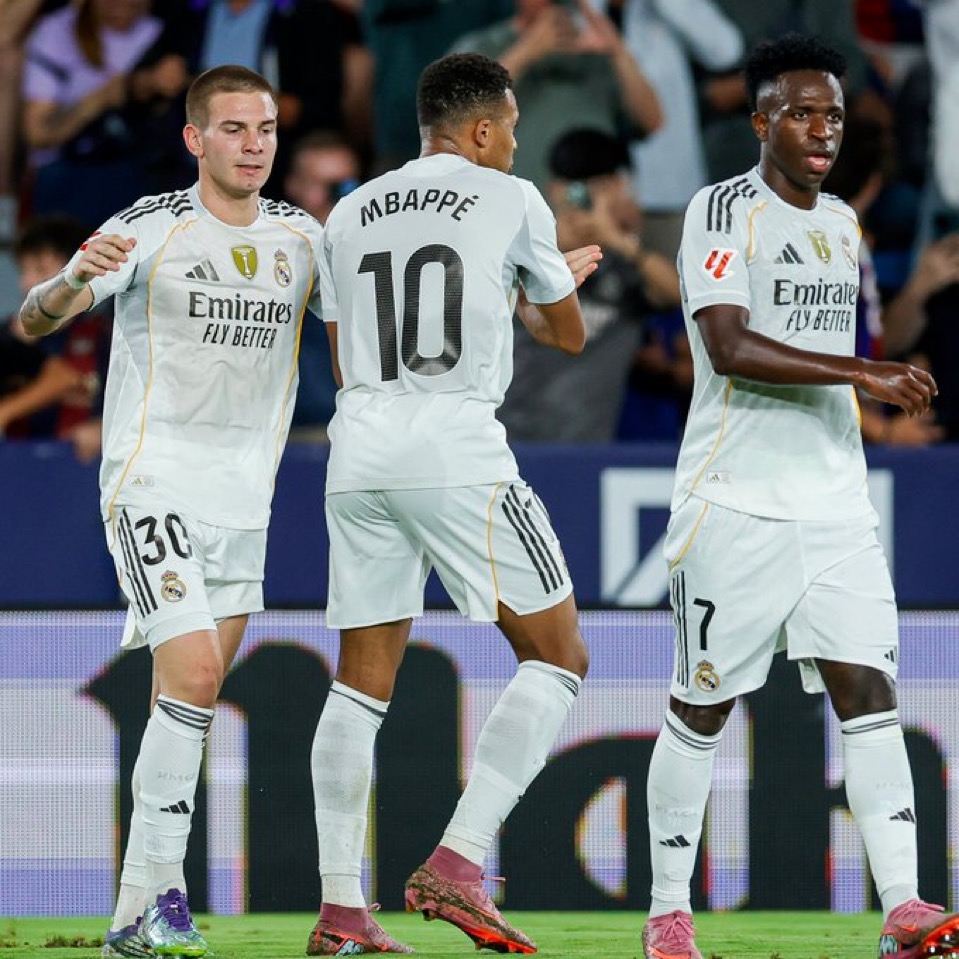 - Unos diez minutos después, en el 38′, Franco Mastantuono amplió la ventaja al culminar una contra liderada por Vinícius (asistencia del brasileño). Fue su primer gol con el Real Madrid.