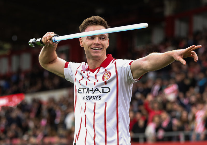 En el 89’, el héroe de la noche para el Girona, autor de los dos goles, dejó su sitio en el campo a Jhon Solís, sellando así su actuación decisiva.