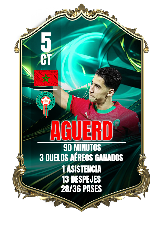 En cuanto al MVP de nuestro partido, por encima de Brahim o Abde hemos decidido elegir a Nayef Aguerd, central de Olympique de Marsella, que ha completado un partido sobresaliente y no ha dado opción alguna a los delanteros de Camerún.