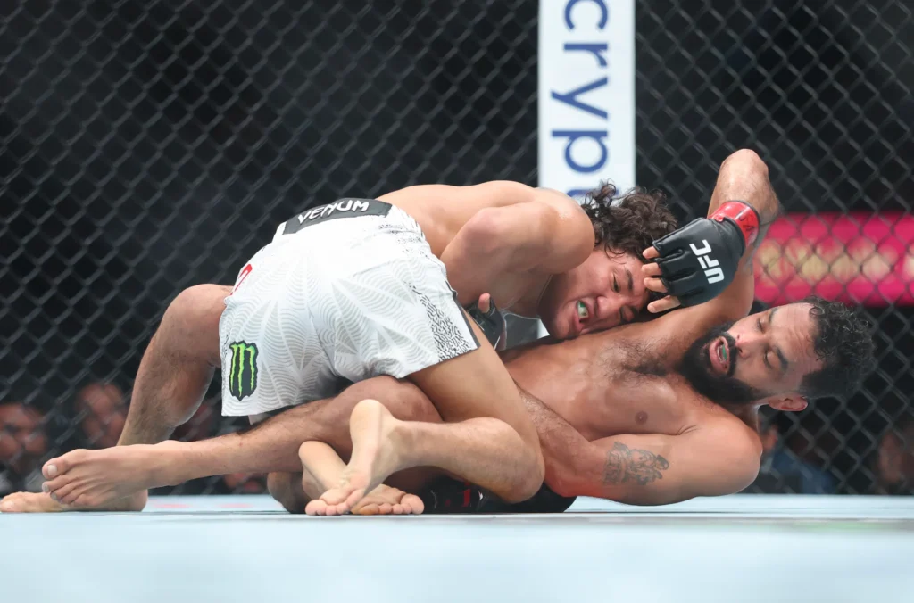 Reinier de Ridder intentó llevar la pelea a su terreno habitual, buscando derribos y posiciones para trabajar sumisiones. Sin embargo, Borralho mostró una defensa de lucha muy sólida y supo mantener el combate en posiciones favorables.