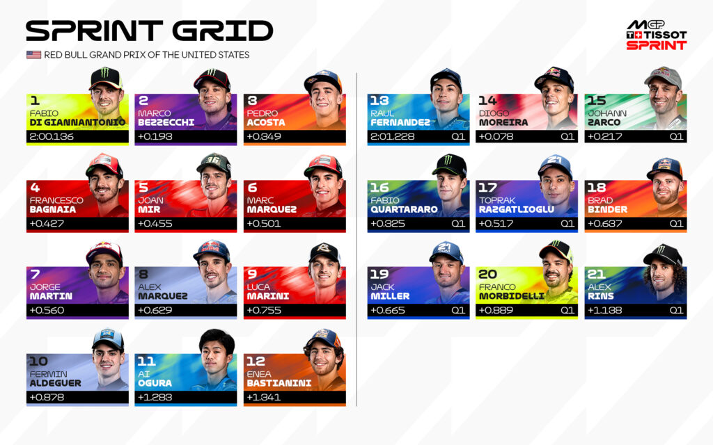 La Q2 del GP de las Américas estuvo marcada por la igualdad y la tensión hasta el final. La gran sorpresa la protagonizó Fabio Di Giannantonio, que logró una espectacular pole con récord del circuito, confirmando su gran rendimiento durante todo el fin de semana.