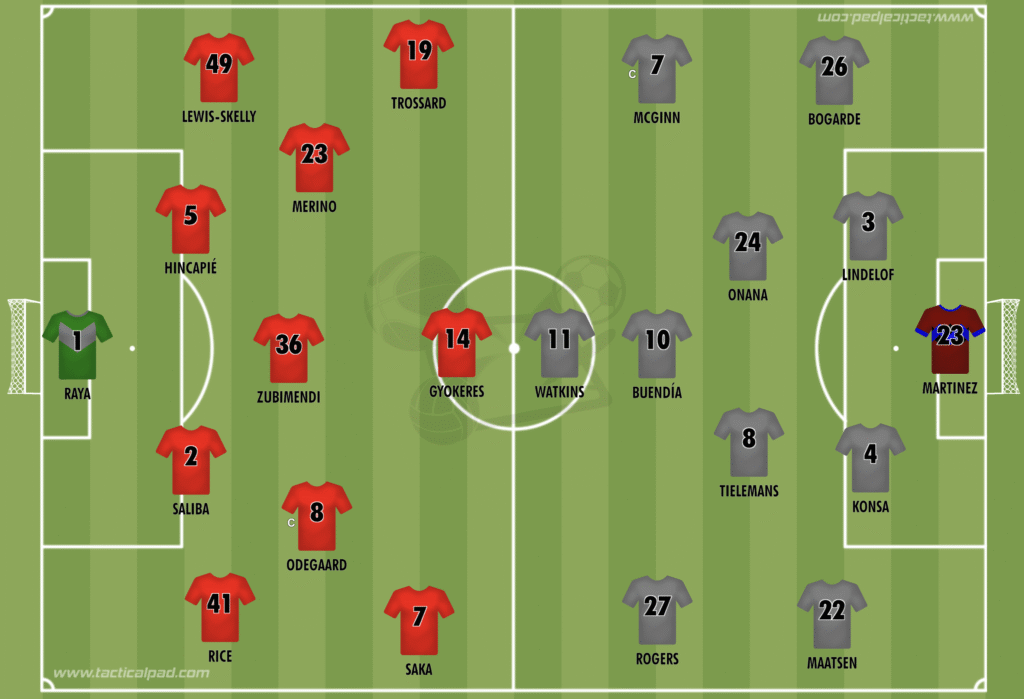 Posibles onces titulares de Arsenal y Aston Villa