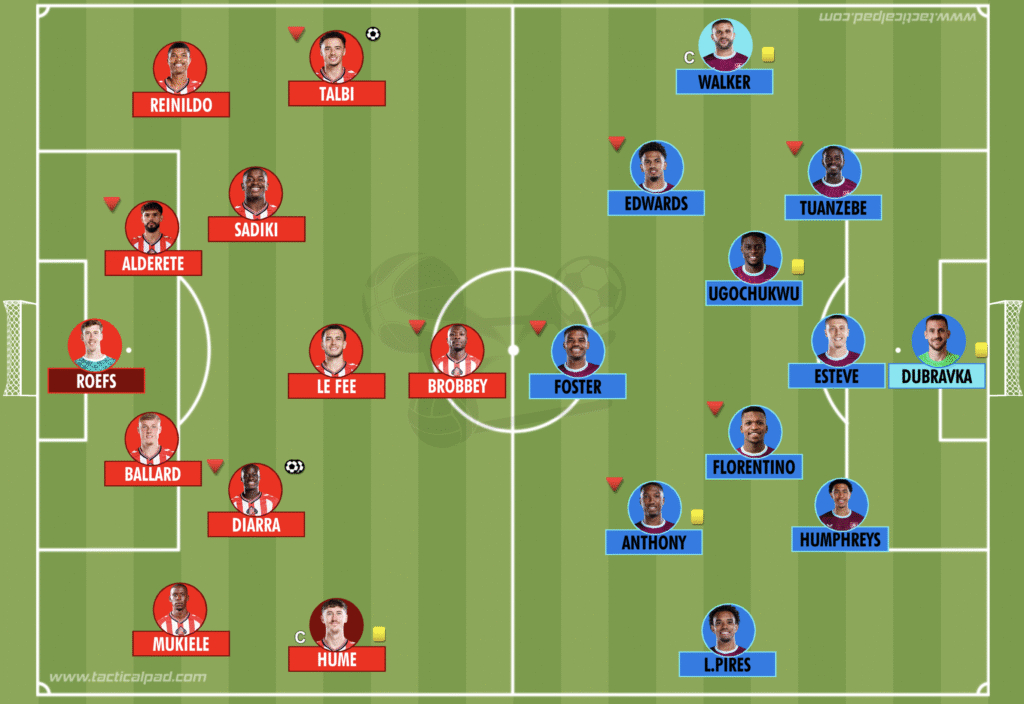 La segunda parte seguiría el guión más bien aburrido de los últimos minutos del primer tiempo y tan sólo una pequeña tanzana entre Hume y Dubravka, saldada con sendas amarillas, y el tercer tanto del Sunderland, obra de Sadiki, pusieron algo de interés sobre el césped.