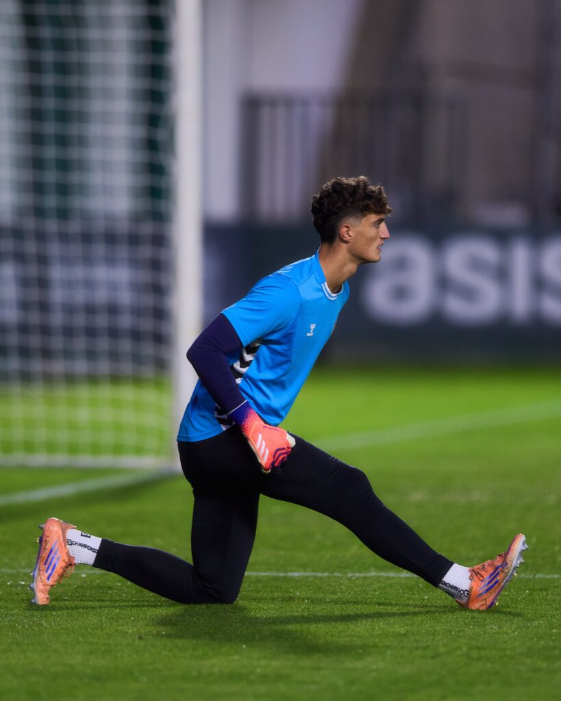 Manu González realizando ejercicios de calentamiento antes del partido | Fuente Twitter: @RBetisCantera